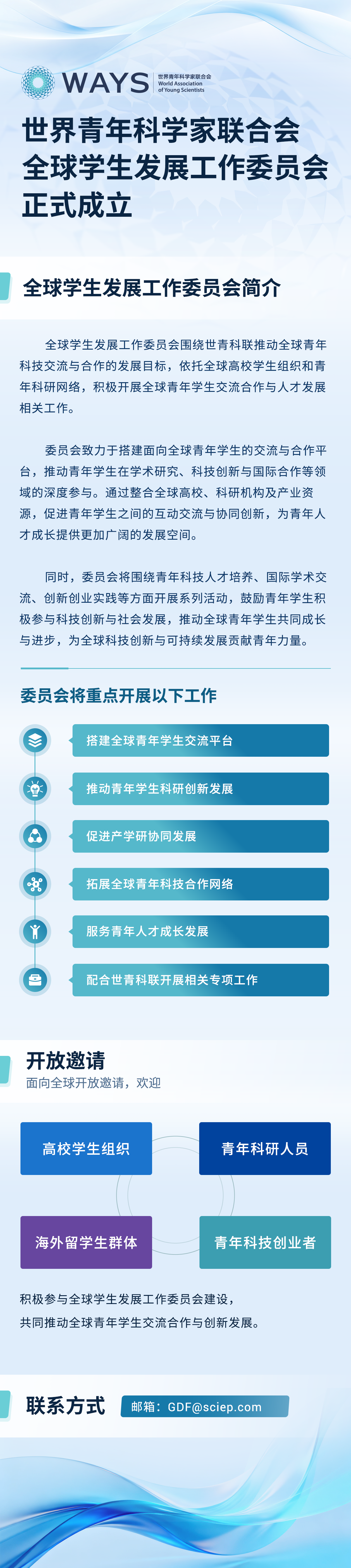 世界青年科学家联合会全球学生发展工作委员会正式成立
